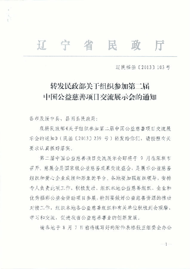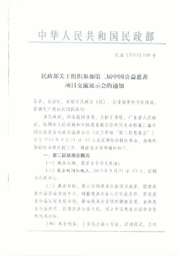 转发民政部关于组织参加第二届中国公益慈善项目交流展示会的通知